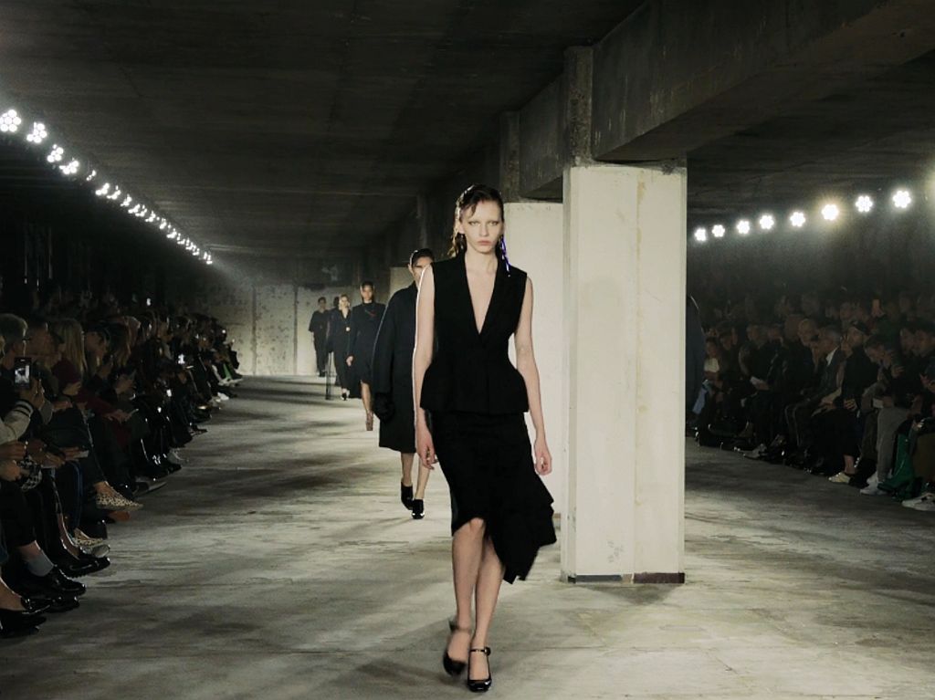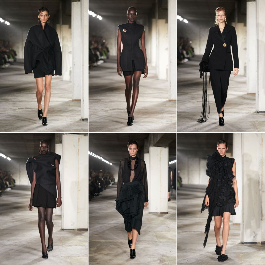 We can’t remember when Dries van Noten showed this much black on the runway—17 looks in total inkiness (this season, we have been doing a lot of counting ). The not-colourful opening set, however, isn’t a mournful expression of something plaguing the world. Mr van Noten has not shown in Paris IRL for more than two years, communicating digitally in ways that were not necessarily illustrative of his predilection for the exuberant (if not stylistically, at least florally). This joyous return could perhaps be seen in the clothes, but rather than jump right into the 花浴 (huayu or floral bath), he chose to begin with those blacks that have between them the soft tailoring that Mr van Noten is partial to and the sculptural assymetry that he has shown to be adept at, allowing the raven sophistication to segue into spring-appropriate pastels before bursting into the summer flowers—print on print, too—that he is known for.
