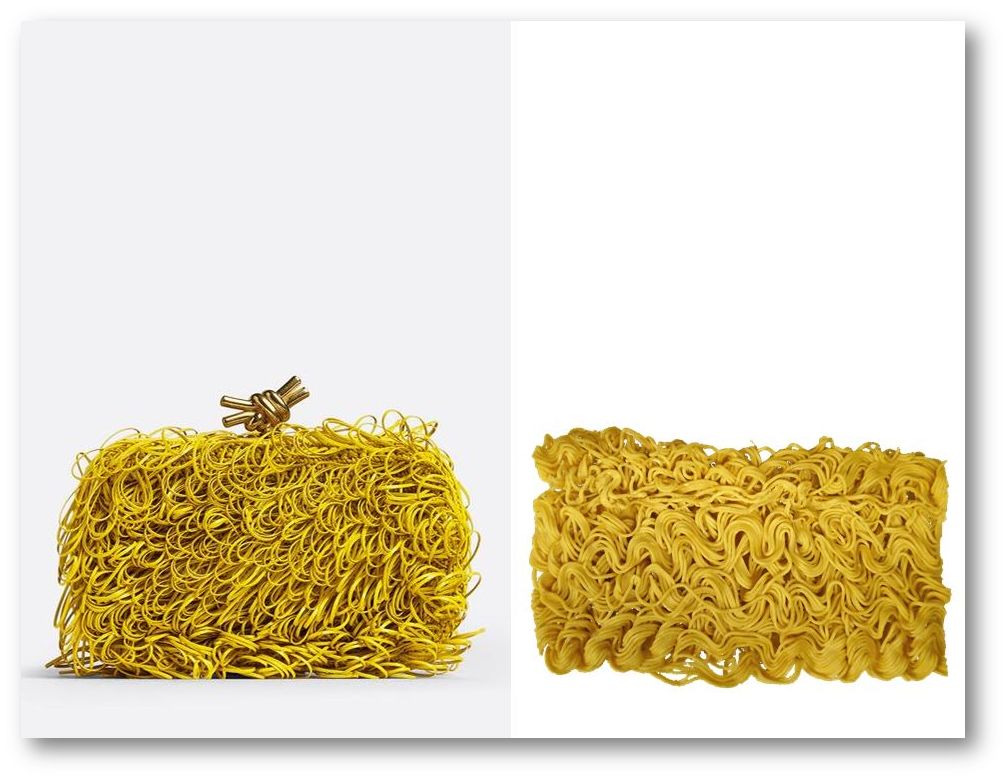Whose mee looks better? Left, Bottega Veneta Knot Minaudiere. Photo: Bottega Veneta. And right, regular dried egg noodles. Photo: Gan Mi Ann