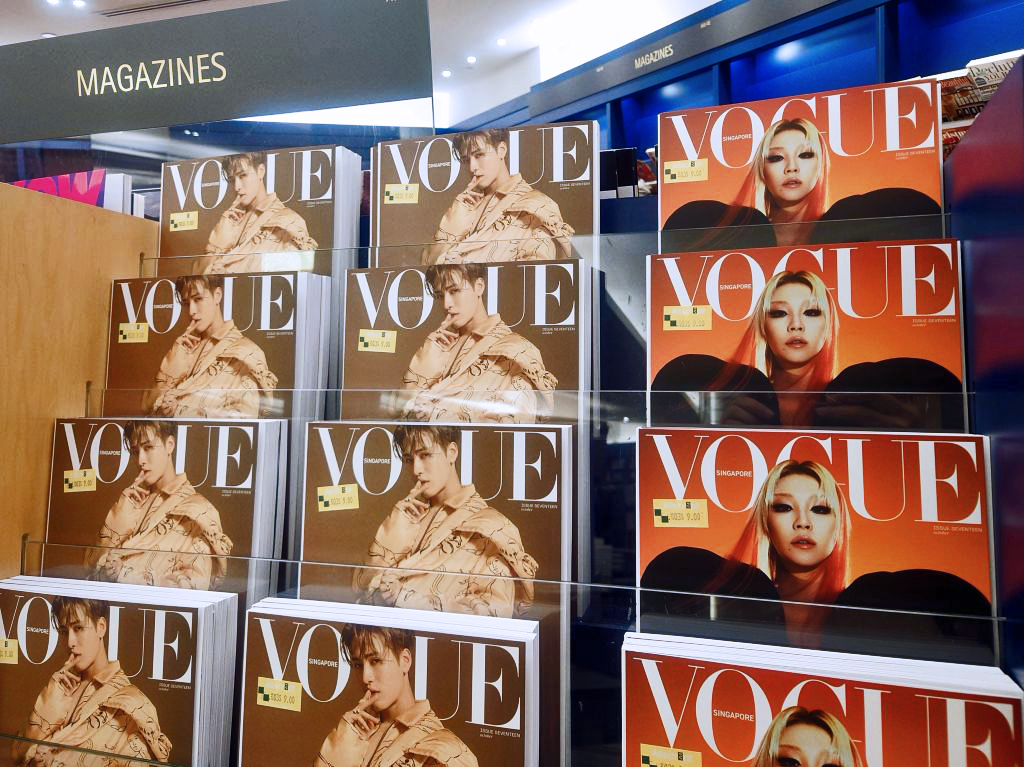 At Kinokuniya this morning, the latest (local) mouthpiece of the “global fashion authority”, as Condé Nast describes its most famous title, had just arrived. With most other publishing houses, an October issue out in the middle of the month is considered late—very late. The current month of Vogue SG comes with two covers: one with Jackson Wang (王嘉尔) and the other, CL (aka Lee Chae-rin), with, strangely, no accompanying story while Mr Wang is given one page to talk about his new album Magic Man. The magazines had just been placed on the five-tier rack when we visited the store; they were yet to be flipped, all in a pristine state. A massive carton of the said title, still unboxed, sat in the middle of the aisle. A staff came by and we asked, pointing to the magazine: “does our Vogue sell well?” She happily replied in the affirmative. Really? “Yes, we expect this issue to sell out,” she enthused. Really? ”Yes, because of the two stars on the cover.” As a Facebook post on the Jackson Wang Malaysia Fan Club page considered, “这次的杂志不买来收藏真的对不起自己 (if this issue of the magazine is not bought for collecting, we’ll do ourselves a great wrong)”. What about the other issues, we wondered. “Oh,” she hesitated, then said, ”not so.” We turned the final question to ourselves: Six months later, will we be writing the obituary of Vogue SG?