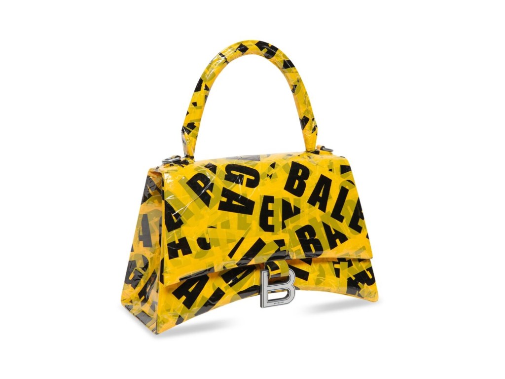 Balenciaga ‘Hourglass’ small handbag in box with tape in yellow, SGD4,100, is available at Balenciaga and online. Photo Balenciaga