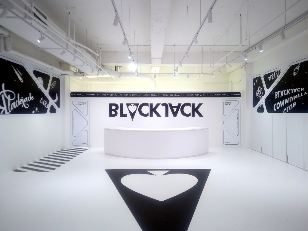 Against its placid neighbours, the new Blackjack store stood out for its stylish incongruence and a departure from its initial funkier self. We remember the unusual and somewhat off-beat tangerine-hued rubber flooring and similarly coloured storage units. The space was not massive, yet there was the centrepiece of an ovoid rack, suspended from a stainless-steel vessel secured to the ceiling. Somewhat industrial was the effect, with a whiff of Halloween. Some shoppers sensed a coldness that they said was consistent with Club 21 stores, but came they did for the merchandise mix that spoke with considerable eloquence of the zeitgeist of the time. Blackjack closed in 2011 after an impressive 15-year run in all. Replacing it was the more intimate and, dare we say, edgier Club21b (that, too, recently moved out, and is in two unmarked units at voco Orchard). But Blackjack is poised to return this month. From an accidental peek at the black-and-white space (top) a few days ago, and the updated logotype, we sensed something appealing is afoot.