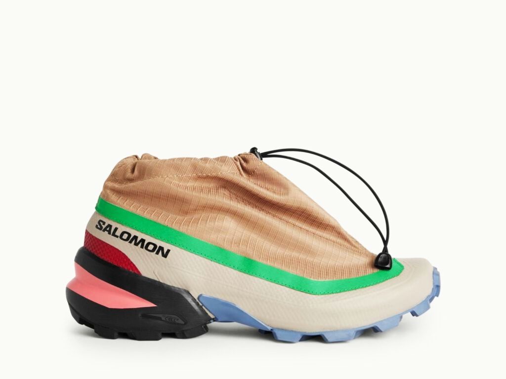 Sneakers, we know, are still conceived to elicit the reaction: “it’s ugly”. But ugly, as we have repeatedly noted, is being redefined, even now, as we write this. Ugly is no longer the ugly of your parents’ fashion-consuming years. Ugly can be a compliment, even admiration Apart from ugliness, sneakers are made bulky too, and often to let the feet look bagged. The MM6 Martin Margiela X Salomon Cross Low is one such sack of a shoe. Sure, there have been others, such as the Tom Sachs x NikeCraft Mars Yard Overshoe, but it is this Margiela X Salomon collaboration, in this colour combo that makes us think of a hybrid of gorpcore and dust bag (or laundry-bag). Shoes can, more and more, be pouches with soles.