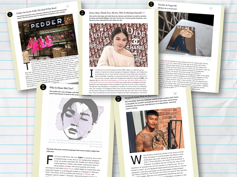 In the fifth place is a rather old post about Burberry’s unusual pick for their 2020 campaigns. This Isaan boy Zak Srakaew, although no longer the face of high fashion, continues to draw attention. Talking about old posts, our report on the closure of Pedder on Scotts in 2021 continue to bring in readers; it holds its place at number two. We wonder if people truly regret to see it go. The biggest riser of the year, jumping to a respectable third spot in just two months, is the report on Vogue SG’s troubles when their publishing licence was cancelled in October and then granted again, for another six months.