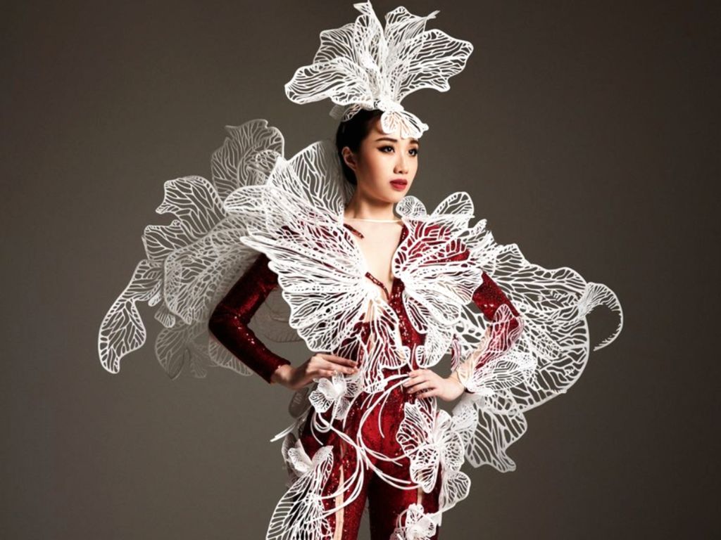 It is debatable if what was worn by Ms Yap, a National University of Singapore student, can be accurately described as a 3-D printed garment. According to the posts on Mr Lee’s and Miss Universe Singapore’s social media pages, the outfit is a result of “combining intricate craft, precise design computation and innovative use of 3D-printing technologies.” So, it is not entirely 3-D printed. The posts went on: “By using computation to grow organic, vein-like structures, these petals form a high-rise collar around the neck, as well as outstretched wings, enveloping the body in a lightweight, white-coloured 3D-printed lattice.” That, of course, makes the costume grander than it actually is. Perhaps, as long as it sounds good, it would look smashing. Growing a winged, biological form that is structural yet covers the body completely is, naturally, a feat. It does not matter that it is arguable that the irregular lines of the petals’ veins and the spaces between indeed make up latticework. The composition appeared, to us, an embellished, closing-fitting suit attached with extraneous decoration, but whether the petals—“200 individual pieces”—are stitched on or affixed with a glue gun, it is not known.