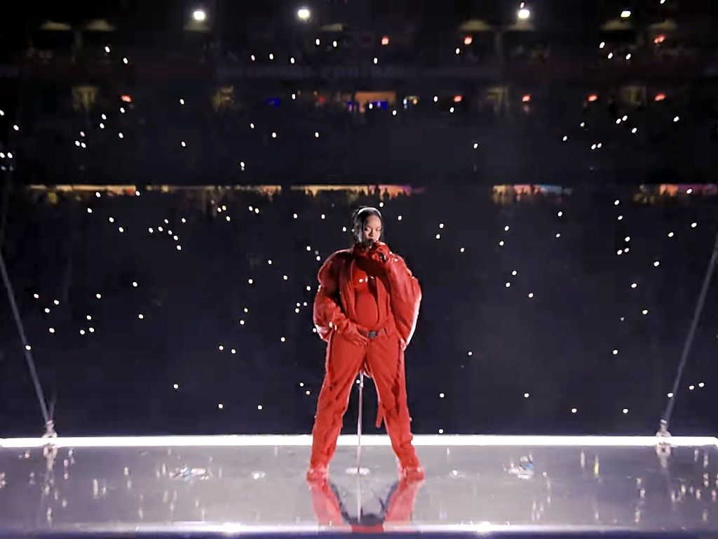No mother aware of her daughter’s pregnancy would allow the expecting woman to perform that high up. But Rihanna isn’t one to heed her mother’s or anyone’s advice. So there she was, in the sky during the much anticipated 2023 Super Bowl Halftime performance, staged in State Farm Stadium in Glendale Arizona on Sunday night (US time). The baby bump was obvious and her pregnancy was later confirmed by her representatives, as well as the US press. True to her Bad Gal reputation, the singer did not seemed bothered with the possibly dangerous elevation, dancing on a suspended platform (one of seven), quite unconcerned with the lack of any barriers that might prevent a mishap (we could see she was strapped with a safety-harness-as-a-belt, secured to the monitor-looking platform). Her moves were not as energetic as one would expect of her, which, given her gravidity and the anti-gravity performance placement, would hardly arouse surprise. Why agree to perform then?