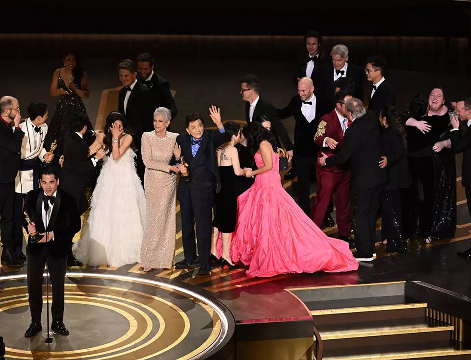 The cast and crew of EEAAO receiving the Best Picture award. Photo: Getty Images