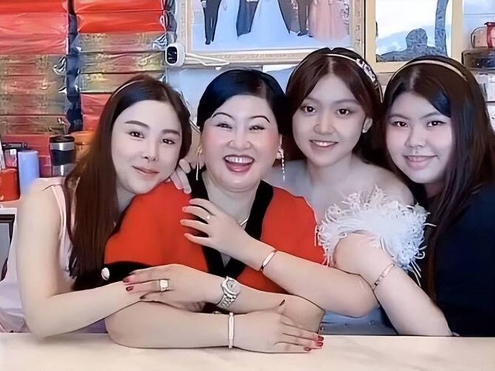 From left, Abby Choi, her mother Zhang Yanhua, and two step-sisters. Photo: Weibo