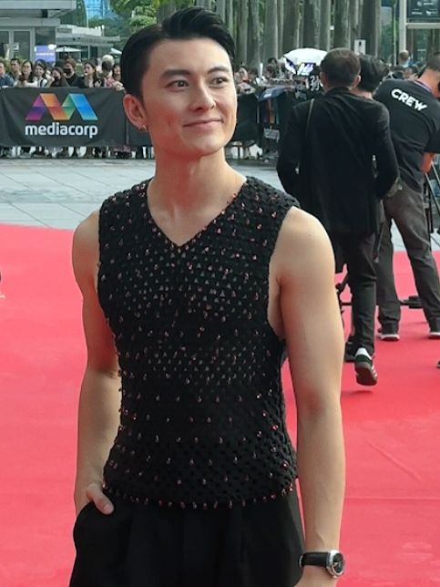 Actor Edwin Goh (吴劲威) knew it would be brutally warm that Sunday afternoon outside Marina Bay Sands. He chose a V-neck, waisted tank top for the Star Awards red carpet, looking decidedly kerbside-casual. It was possible that Mr Goh wanted to let his fans and TV audiences know that his body was then trim and toned. Or that he was simply averse to the standard red carpet wear of suits, even if shirtless was the way to go at this year’s event, such as seen on his red carpet buddy Zhai Siming (翟思铭). But what he wore was not an ordinary tank top. It was a crocheted version, and one that the actor made for himself, proving that he can do more than slip-knotting. But why the vest could’t go with, say a shirt, wasn’t immediately known. Mr Goh’s choice of wearing his own crochet top was, of course, reminiscent of Tom Daley knitting his own sweaters and also wearing them to public events. Was another Mediacorp star mimicking what other international celebrities had done or worn?