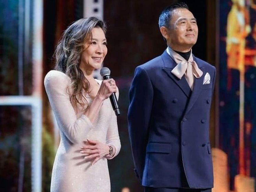 We’re always amused that the entertainment-magazine-turned-general-interest-news-site 8 Days loves commenting on the fashion that stars adopt. After all, “Singapore’s definitive pop culture navigator” has a such a luminous view on what is fashionable. And they adore descriptions that show they are standing on the precipice of the consumption of fashion. In a recent report on the reactions to what Chow Yun Fat (周润发) wore when he appeared on stage at the Shanghai International Film Festival alongside everywhere-all-at-once Michelle Yeoh (杨紫琼) and Chinese director Chen Kaige (陈凯歌), 8 Days wrote knowledgeably about Mr Chow’s sartorial flair: “super stylish in a classy double-breasted black suit which he complemented with a light pink neck piece.”