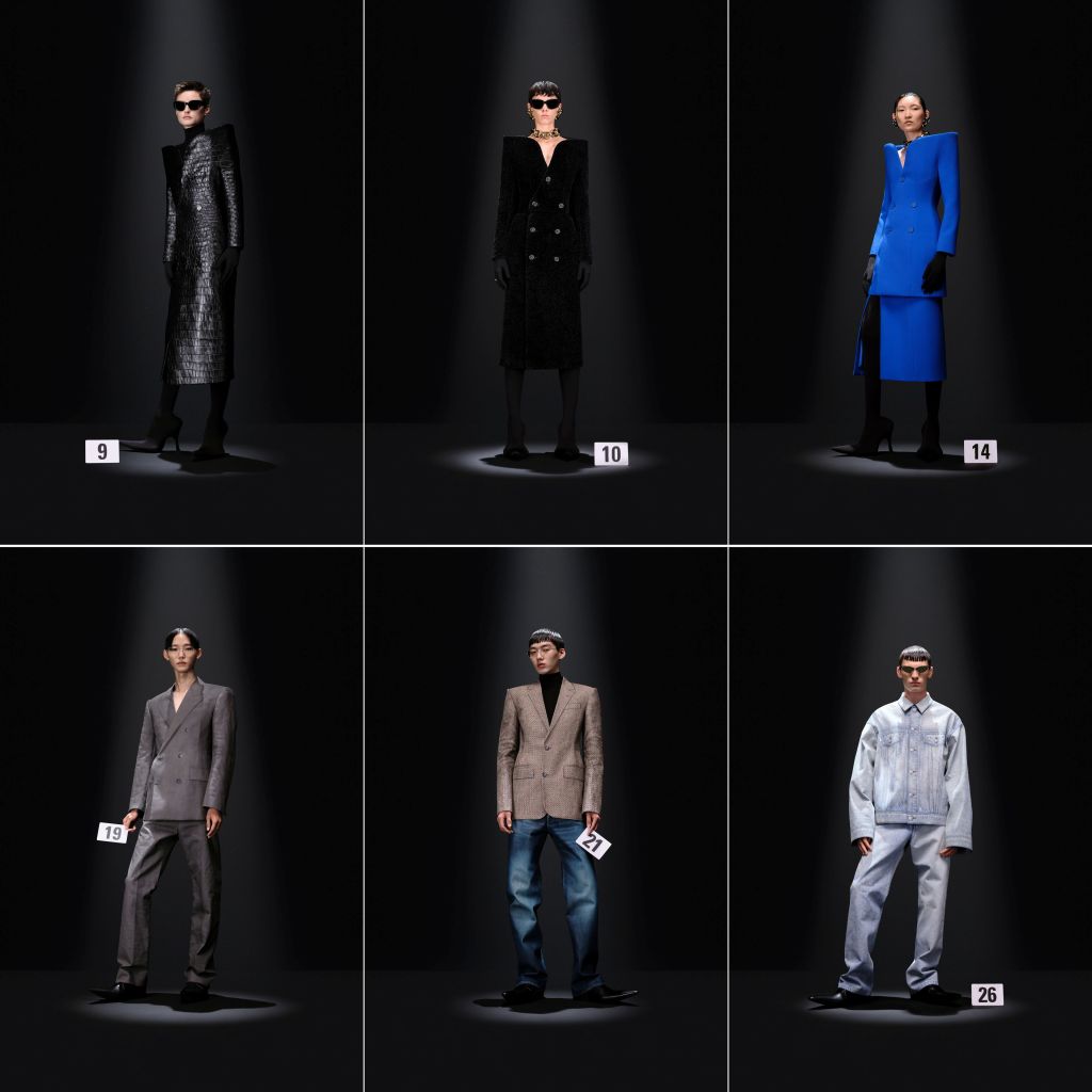They were dramatic in terms of shape, but they were not absurdly exaggerated. Rather, it was all in the minute calculations of proportion that easily arouse the imagination. We were drawn to the seeming minimalism that was not, however, applied to their construction, as well as the sometimes barely discernible surface treatments, including rather clever tromp l’oeil applications. A pair of worn ‘leather’ jeans in look 28, for example, was paint applied on linen pants to mimic the distress from wear (but, thankfully, not tear) and will set you back €25,000 (or about S$36,600). The evening dresses were especially splendid, never departing from the elegance (and, perhaps, hauteur?) that had characterised the brand from the start. A red lace dress with a rigid bell-skirt was breathtakingly precise in rotational geometry. A one-shoulder dress, from the front, hugged the shoulder, but at the back, hung, like a limp leaf, without appearing to hold itself to the body. The final dress, which evoked an armour-as-party-dress for Joan of Arc, was part Thierry Mugler, part Guo Pei, although the dress is lighter than what either designer had done, as it was made with 3-D printed parts. Eight months after those very public controversies that veered Balenciaga on a different course, it is still in an indefinable place. Could this back-to-good-design restore the brand’s reputational good health?