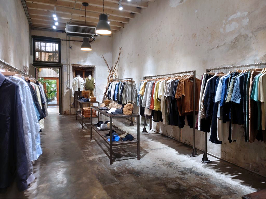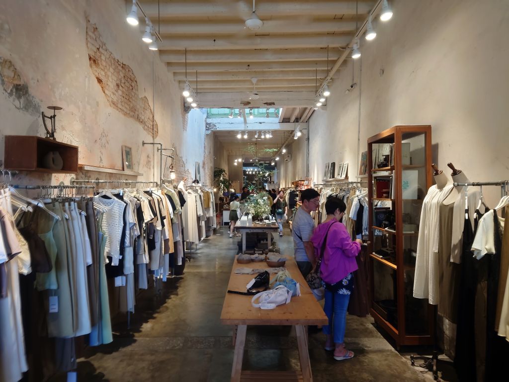 I sometimes think they’re the state’s answer to the KL-based Seed. While Seed is more city-centric in their anything-goes aesthetic and has a far wider reach (they are considered a national brand), Sixth Sense is unabashedly local, relaxed, folksy, and imbued with a naturalness of form that commensurate with the name of the street on which it has become somewhat of an “institution”, as fans would say. This is what Singapore’s Island Shop tried to do, but did not succeed. Sixth Sense Design now operates (and produces for) two separate stores: the original Sixth Sense (comprising its eponymous label and other indie brands) and the newer sibling Warehouse 129, which according to a staffer also includes collabs with other regional indie brands, “from Korean, Hong Kong and Taiwan; mainly Hong Kong and Taiwan”. It is sometimes hard to tell both stores (design and space use) and their merchandise apart, but upon closer examination, it is apparent that Warehouse 129 is stocked with what might be considered trendier styles (boxier and looser shapes) that would work outside of Penang.