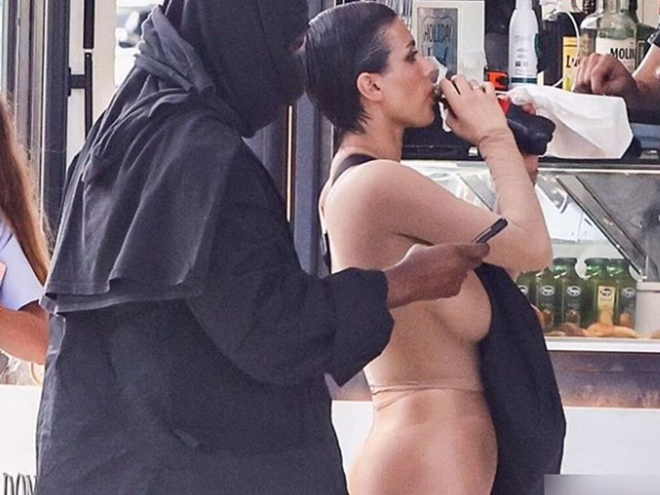 Kanye West and Bianca Censori, who was in a nude catsuit, taking a break during their trip in Florence last month. Photo: stylosophy.it/Instagram