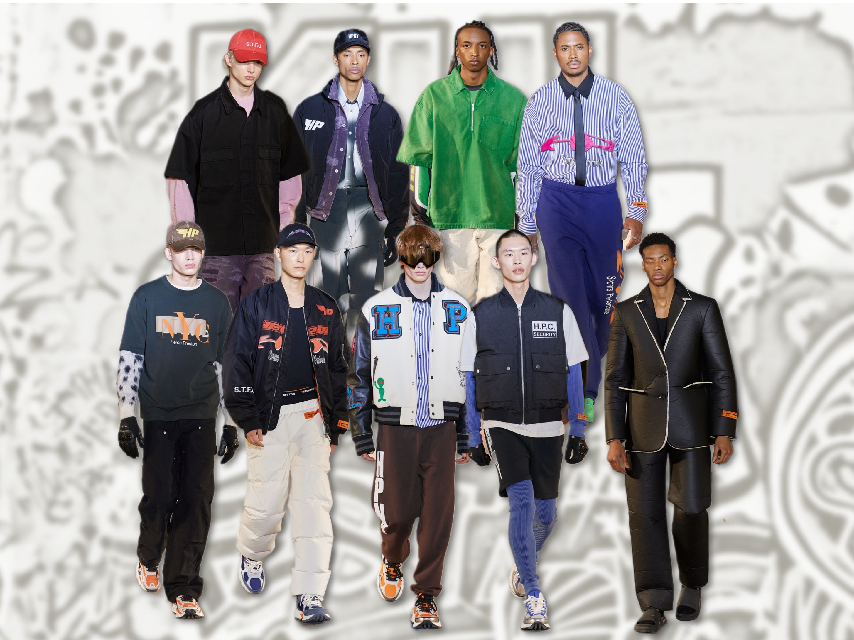 Heron Preston autumn/winter 2023. Images: gorunway.com. Illustration: Just So