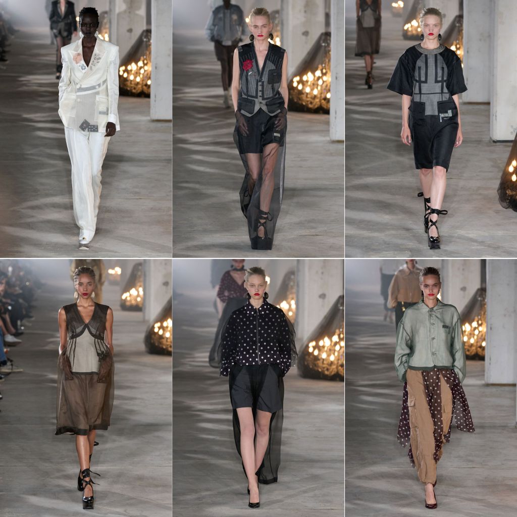 His spring/summer 2024 collection, dubbed Deep Mist, might change all that. Mr Takahashi has shown in Paris since 2002 (Undercover is 34 years old), and his ambiguous aesthetic has been a single constant. Despite his annual showings, not many consider his output as reverentially as compatriot Junya Watanabe’s, even when he has created remarkably inventive clothes throughout the years. This season, the collection climaxed with the lights down and the three models emerging in transparent balloon skirts, LED-lit to show terrariums (could they be aquariums, minus the fish?) within, filled with flora and fauna (did we catch sight of some butterflies roo?). Who would have expected that in the concrete space, lined in the middle with crashed chandeliers wrapped in tulle, such a delightful vision would be revealed?