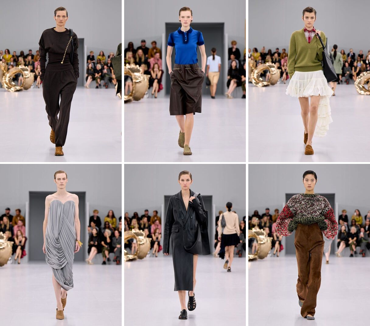There were more unusual pieces, such as the knee-length, A-line skirts (leather?) that appeared so loose at the waist that they needed to be secured by what could pass off as knitting needles, creating fetching gathers as a result. We wowed at one strapless dress with extreme Grecian drapes, asymmetrically arranged, as well as a sort of column, in butter yellow, without a back but with a rigid and squarish bodice, and that knitting needle diagonally pierced through the upper half, as if it was a repurposed 发簪 (fazan) or hair pin. Although we sometimes sense that Mr Anderson does play down the unconventional—even bizarre—that he stays with in his own eponymous collection rather staunchly, his Loewe is no less engaging or gripping, however high he pulls up his pants.