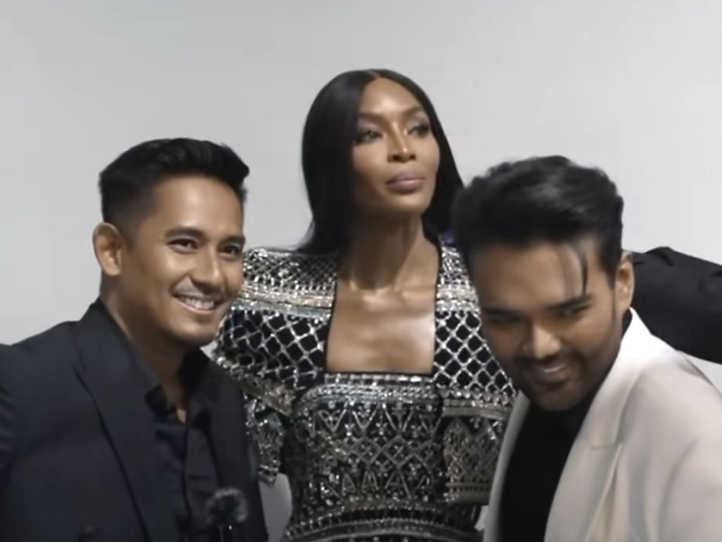 A dream team. (From left): Ruzaini Wan Jamil, Naomi Campbell, Rizman Nordin. Screen shot: Rizman Ruzaini/Youtube
