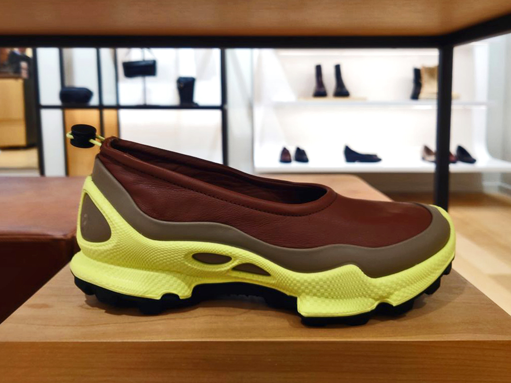 That POV means a more gallant take on the brand’s classics, by marrying the sportif to the feminine. Especially fetching is the Biom-C Trial shoe, based on Ecco’s signature Biom last that is characterised by its anatomically-sensitive width. Add to the comfort factor is the rubber outsole’s organic form, which Ms Ramsay Levi has given strikingly bright colours, such as the chartreuse seen in the above photo. From the side view, the shoe is, in fact, quad-coloured. The outsole frames a supple leather upper in the shape of those of conventional pumps, with an adjustable, toggled cord at the rear of the collar. True comfort, Ecco affirms—and we agree, does not have to sacrifice style.