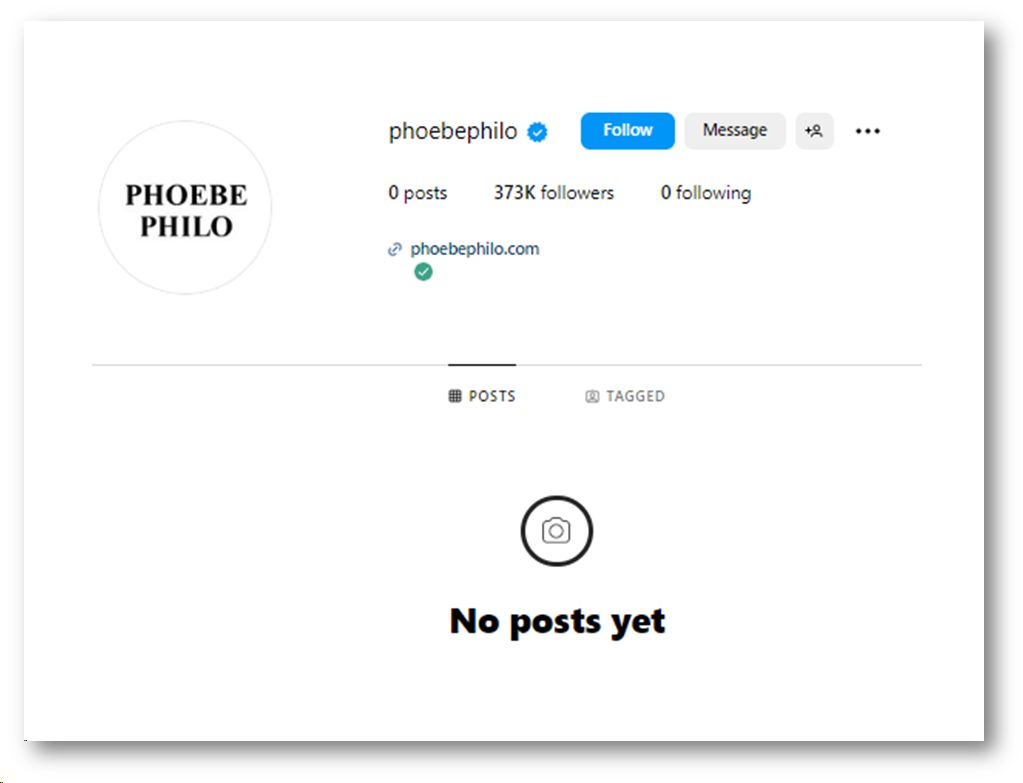 Phoebe Philo Instagram page on 2 November 2023, three days after the launch of her collection. Screen grab phoebephilo/Instagram