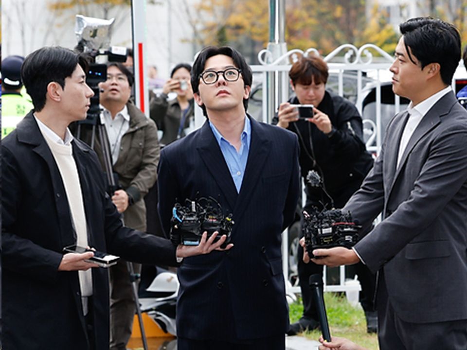 It was not a court appearance, but G Dragon (aka Kwon Ji-yong)—under investigation for alleged illegal drug use—presented himself earlier today for interrogation at the Nonhyeon Police Station in Incheon, west of Seoul, looking far from his fashionista self. He arrived in a dark gray BMW EV* to a scrum of photographers and reporters, emerging from the vehicle still with a vestige of the affectation of a pop star. He swung his arms backwards to stretch his shoulders, as if to relieve some unknown back pain. When the thirty-five-year-old was interviewed by reporters, he scarcely looked at them. In one image published in the local media, he was gazing at the sky. In another, he made an odd shape with his lips, as if unable to comprehend the question posed to him. As he headed towards the stairs to ascend and enter the building after the interview ended, he held his left wrist and rotated it as though to lessen an ache, and did the same with the right. He flicked both wrists as he entered the police station. It is hard to be sure if it was conscious artificiality of not being affected by what he was to confront.