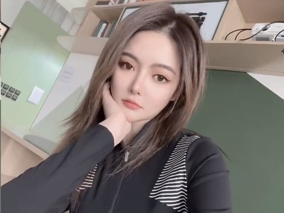 A photo from nearly a year ago, showing Ms Han in the same black top. Screen grab: blue & grey/Douyin