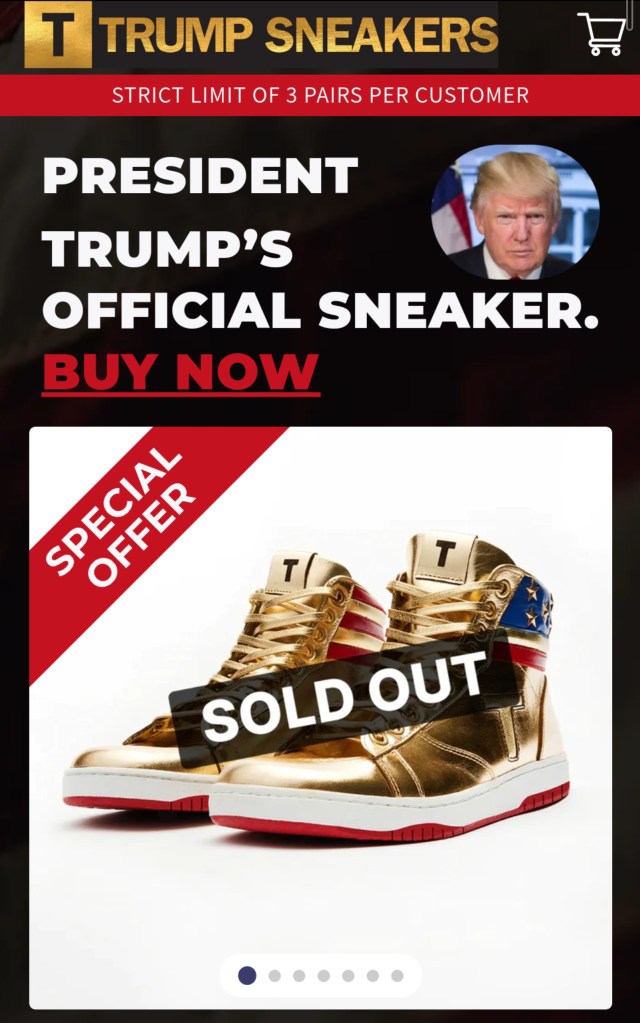 Screen shot of the Trump Sneaker website