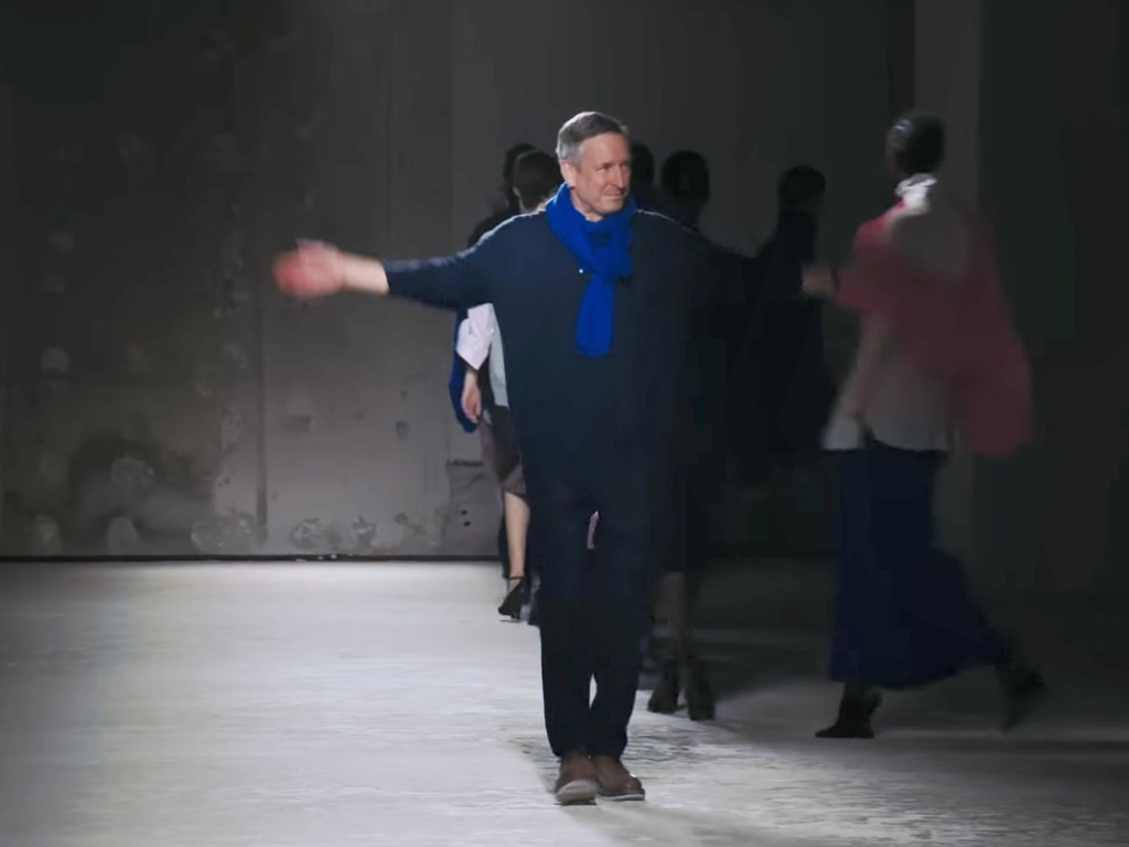 Dries Van Noten taking a bow at the recent autumn/winter 2024 show in Paris. Screen grab: driesvannoten/YouTube