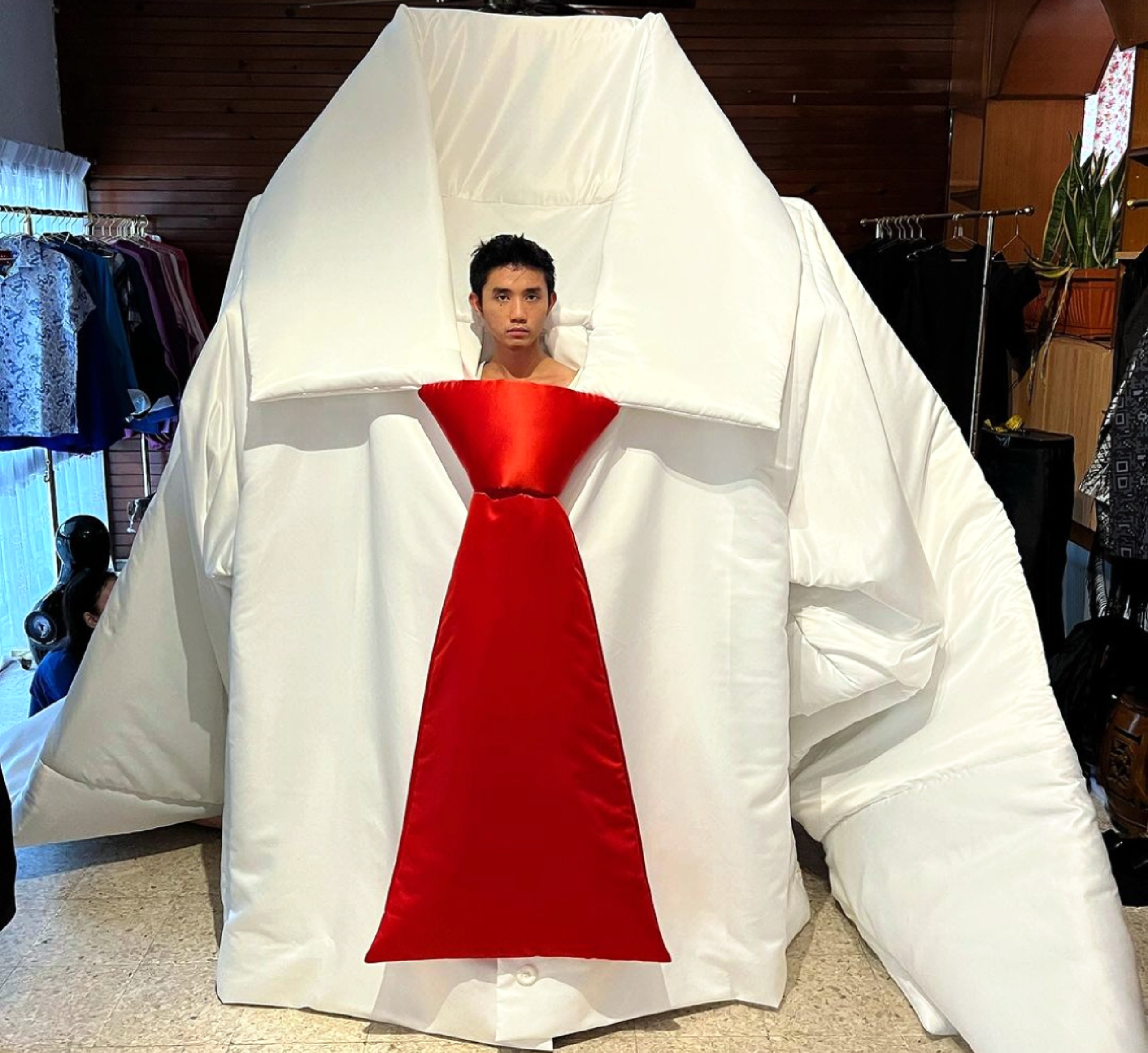 Tan Kel Wen was his own fit model for his giant of a shirt, seen at the last Kuala Lumpur Fashion Week