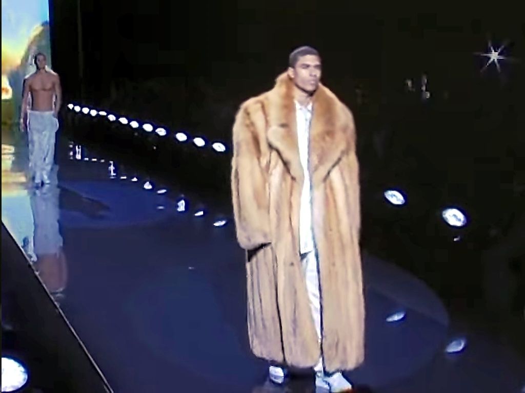 A gangsta-style fur coat at the debut Sean John show in 2000. Screen grab: videofashion/YouTube