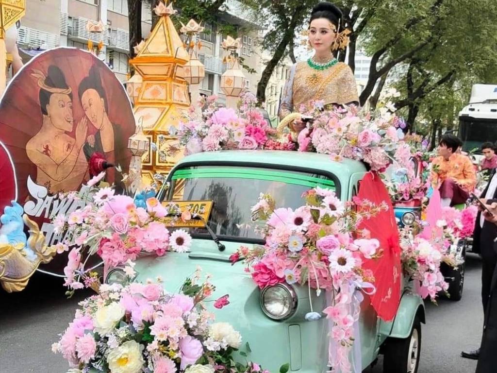 It is not quite clear what she was doing exactly in a Songkran parade. The Nation said she “crashed” the show. Others believed she was enlisted to lend “star power” to the annual event. Why that was necessary when there were many Thai actresses to fill her role was not discussed. Fan Bing Bing attired to look Thai may be amusing—even narak (cute), but for some locals, her turn-out was considered cultural appropriation. Did she look especially Thai? Many were divided on that. She was like those Chinese tourists who dressed in pha sinh (tubular skirt) when visiting Ayutthaya. Thai fans who appreciated her presence in the parade did consider her ride to be lacklustre as she was placed on a tuk-tuk-looking mini-lorry festooned with flowers, like a bridal car decorated on a budget, rather than the far grander peacock on a profusion of blooms that Ms Porsild rode in, and sheltered from the sun by a ceremonial umbrella. Ms Fan was unsheltered.