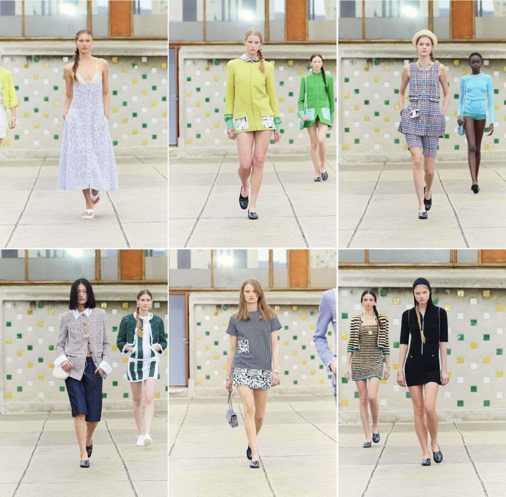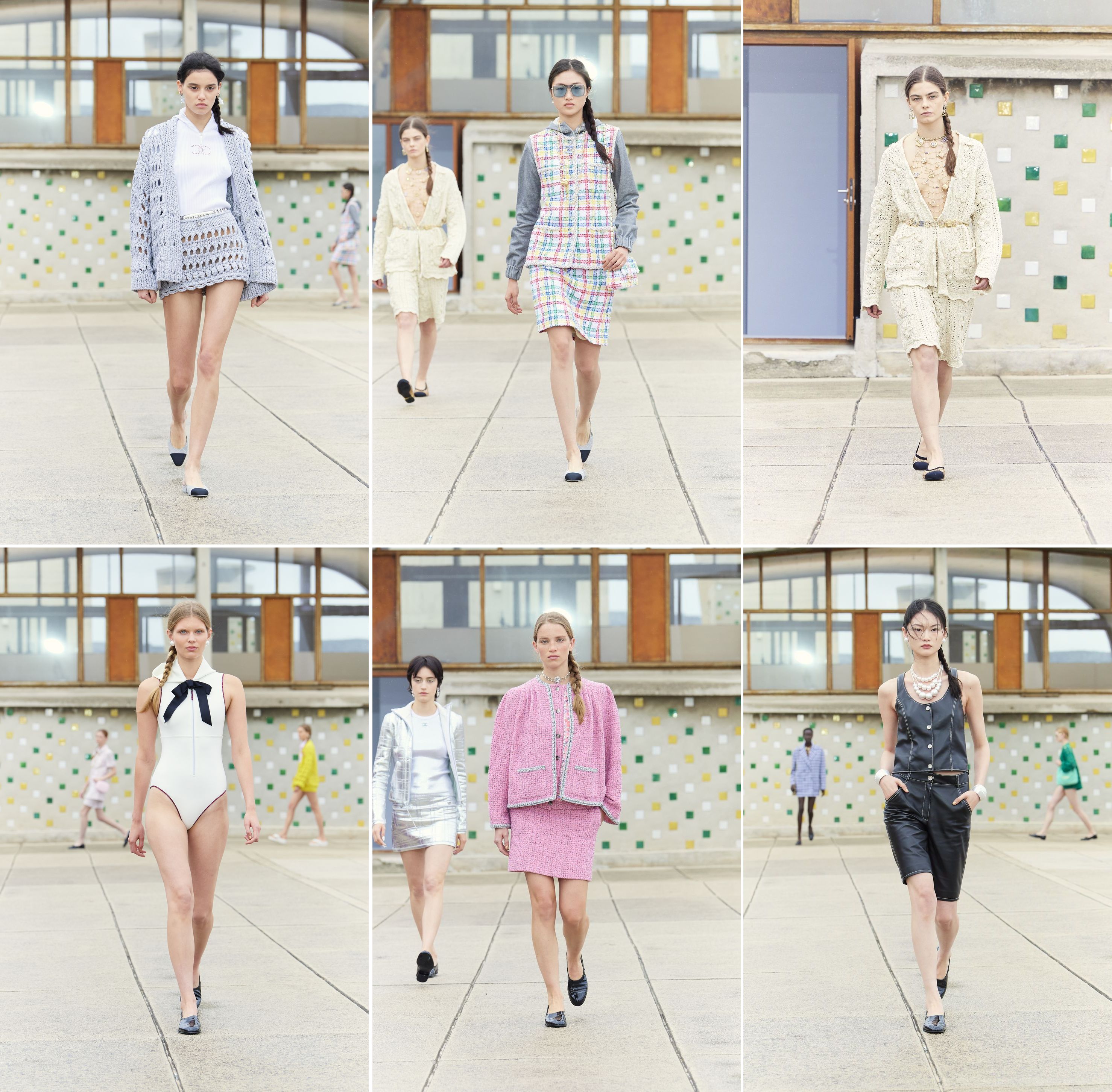 Chanel staged the show in Marseille, the seaside town of Provence, Southern France, not quite Coco Chanel’s beloved Biarritz, where she opened her first couture shop. And, rather than on the beach or promenade, or some luxury resort, the rooftop of La Cité Radieuse, a former appartement—now an art complex—designed by Charles-Édouard Jeanneret, better known as Le Corbusier, was chosen for the alfresco runway. Despite the retro-futuristic-brutalist façade of the building, the show venue up there was rather underwhelming, compared to other outside-of-Paris locations Chanel had previously chosen for their between-seasons shows. Perhaps to heighten the non-existent futurism of the clothes, various ‘Parts’ of Jean Michel Jarre’s Oxygène and Équinoxe, with their vintage electronic bleeps and analogue synth swirls, soundtracked the show to lend an oddly dated—and disconnected—sonic vibe to the parade.
