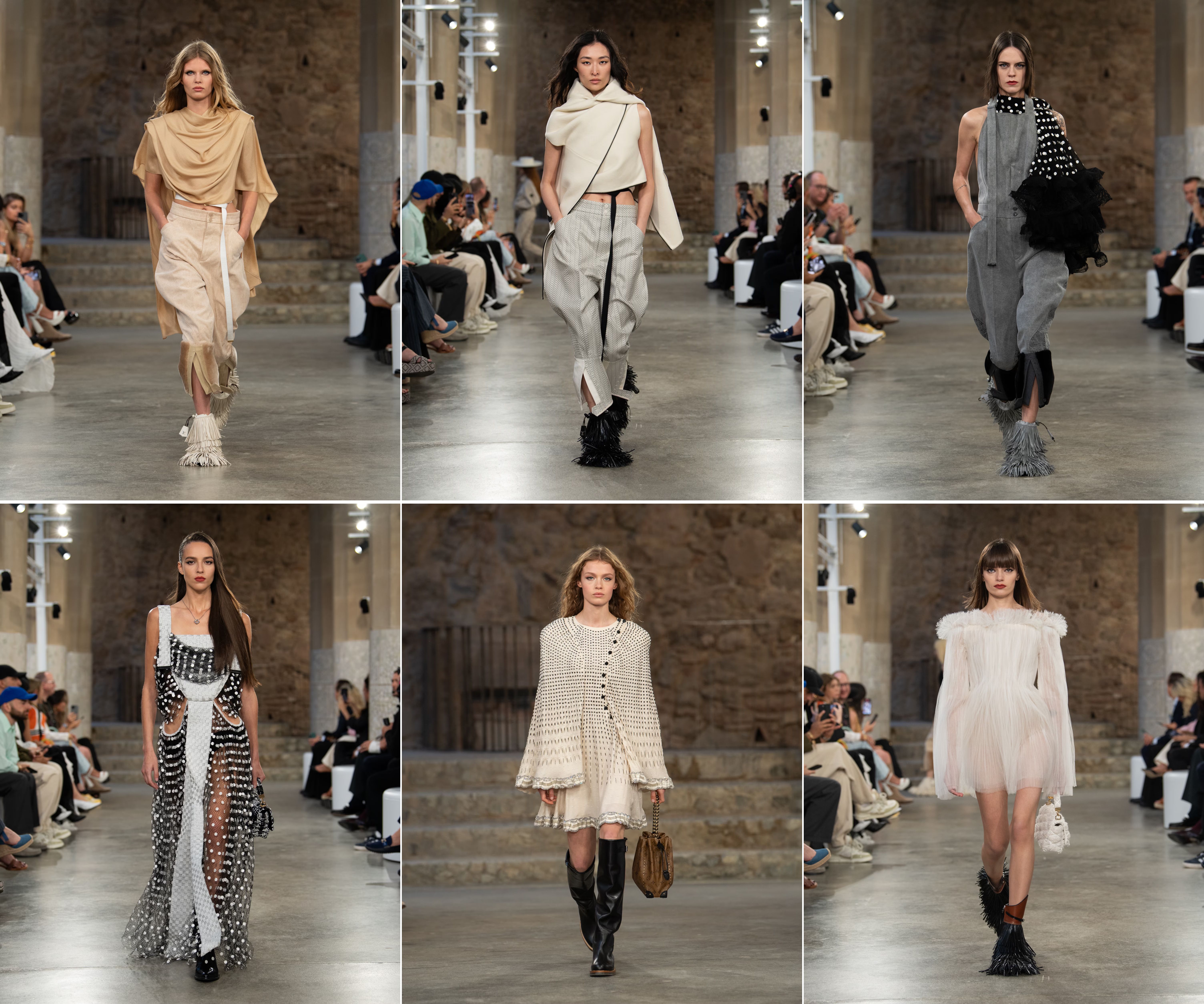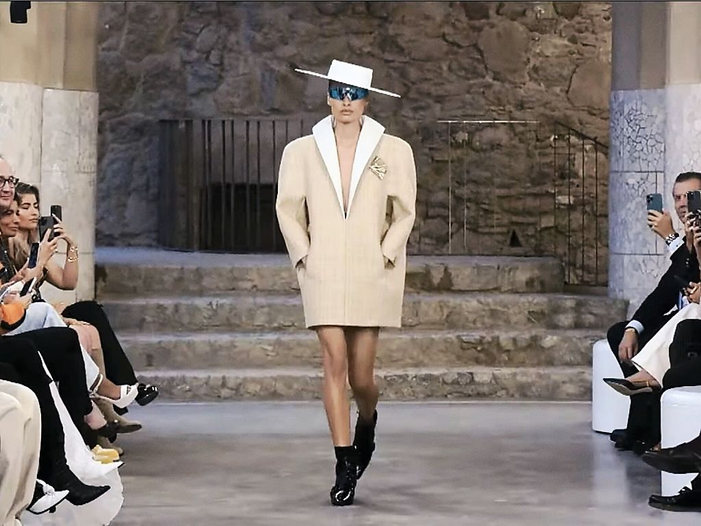 The show and the staging were said to be a nod to the sailing competition, the 2024 America’s Cup, which found a host in Barcelona this year and which counted LV as the main sponsor. Despite the association and the venue choice, there was nothing nautical or terribly Gaudian about the clothes. Nicolas Ghesquière did what he is good at: odd shapes, unconventional silhouettes, and vague retro-ness. The collection, to us, felt cobbled together, even if the compositional oddness felt deliberate. In that sense, it could be considered to embrace the spirit of the project that Count Eusebi Güell had commissioned Mr Gaudi to embark on. While there were no obvious references to trencadís (the Gaudi style of broken tile mosaic) or spires (as turbans that Erykah Badu would be thrilled with?), the pieces appeared otherworldly, barely touching what one might pack for a cruise or, for that matter, any holiday. These were clothes that would appeal to the rare individual for whom dressed-up is an every-occasion affair, even—or especially—when vacationing.