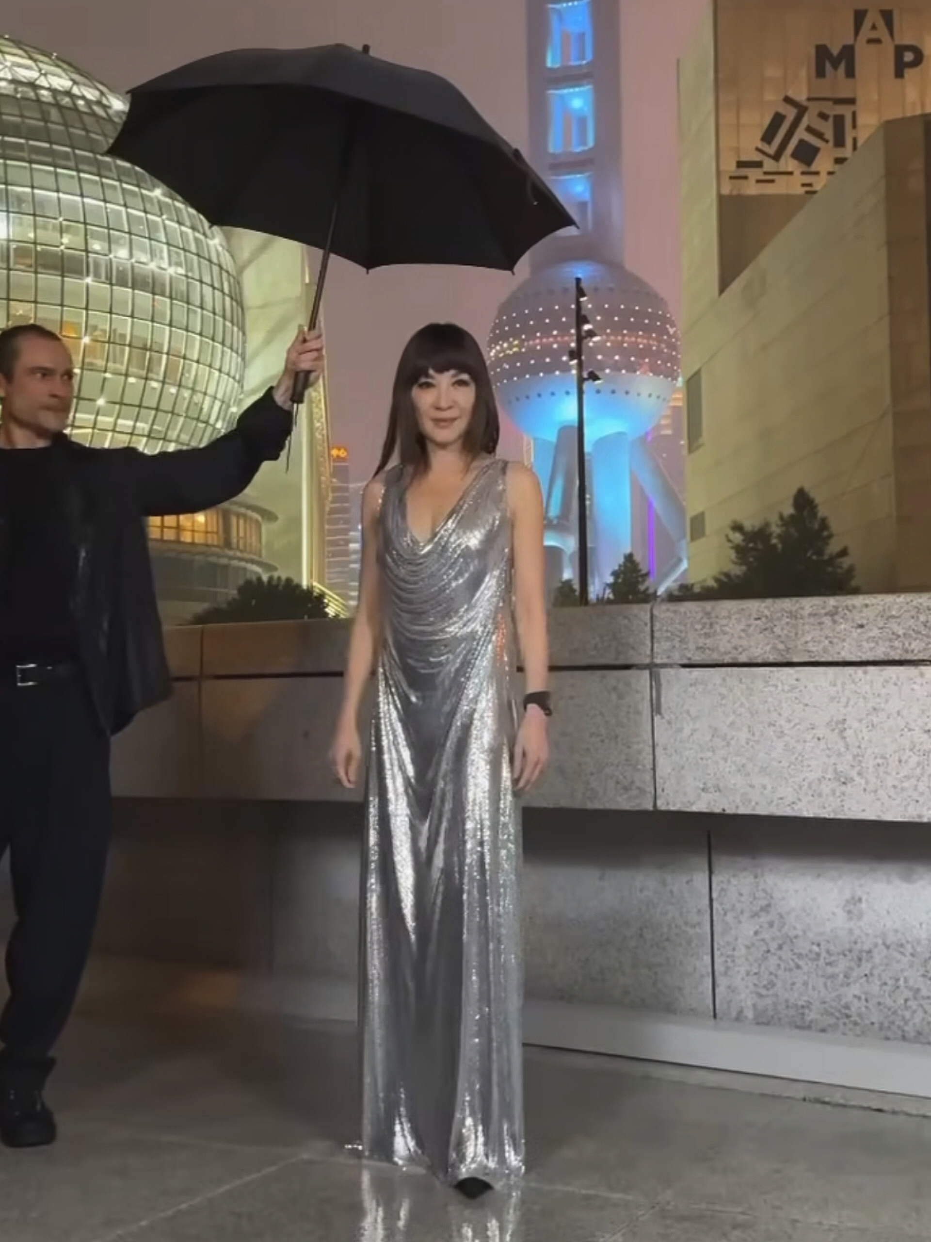 Silver is the stunner, Michelle Yeoh probably thought. She is into metallics these days. At the Balenciaga Cruise 25 show in Shanghai yesterday, she wore a silver chain mail gown with a draped cowl neckline. This seemed like a remedial follow-up to the silver foil dress she wore to this year’s Met Gala, four Mondays ago, that was generally panned. And, joked about. This time, curiously, the dress was more in line with what the house of Versace might offer than a creation evocative of Balenciaga. There is nothing inherently off about the gown, but how it looks on the wearer seemed to boggle the mind. As one Michelle Yeo fan texted us from across the Causeway, “能把它穿丑也是一种能力”—being able to wear it in such an ugly manner is also a skill. “Ugly” is perhaps too severe. But that it is unappealing even to admirers is perhaps unfortunate. An SOTD reader said to us, when we showed him the photo, “Oh, quite trans-y, hor?” Another was more succinct: “dragster!”