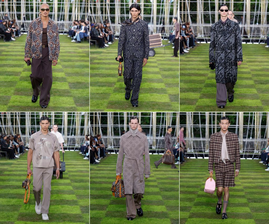 It was not enough to reach out globally (or be the maison culturelle that LV desires to be) of course. Mr Williams wanted his collection to be, as he told the media, “homage to human beings (some quote him saying “mankind”)”. The world population was projected to be 8,019,876,189, according to the U.S. Department of Commerce. Mr Williams sure dreamt big. The collection, Le Monde Est À Vous (The World is Yours in French), could be, in terms of ambition, targeted at a worldwide audience, but aesthetically, it did seem to focus on a Black hip-hop performing and loving crowd. In fact, the first 28 of the total 81 looks were worn by Black men (that is nearly 35 percent to start). The sum is varied, meaning inclusive, which also showed that ho-hum varsity jackets (even with a print of the globe) and hoodies (even monogrammed) deserved spots on the runway. It is hard to see if Mr Williams did have that many ideas for this many looks for one show, but it was a serious attempt to be un-boring,