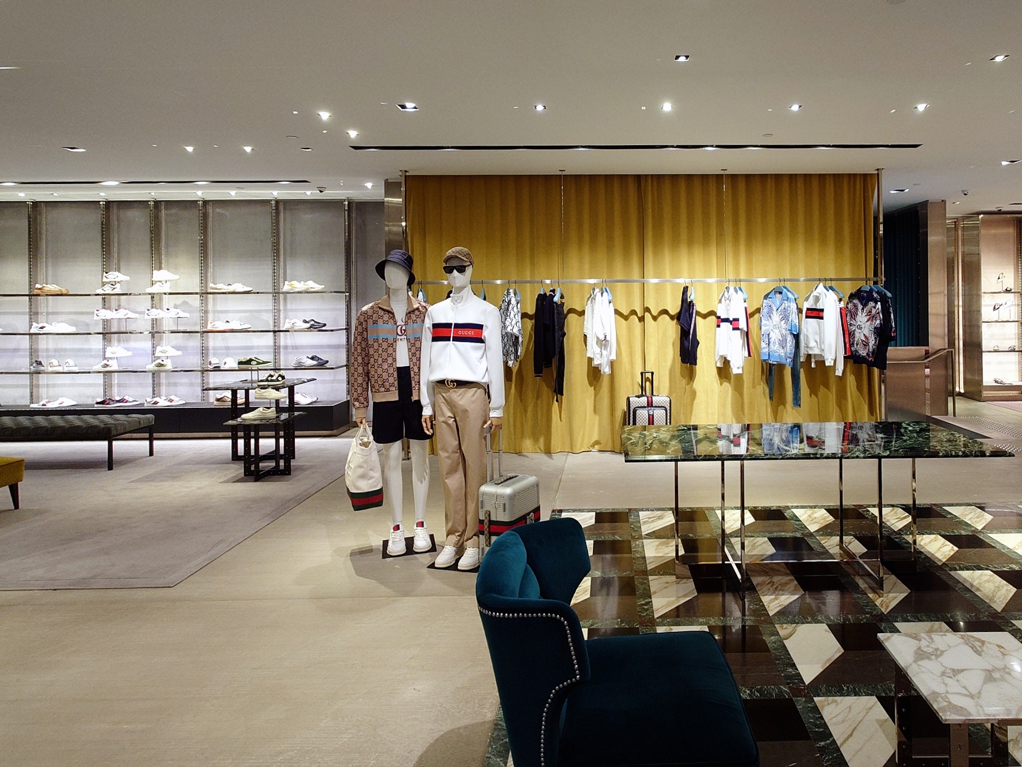 A shockingly customer-free Gucci store in Hong Kong’s Times Square, with very little merchandise to entice