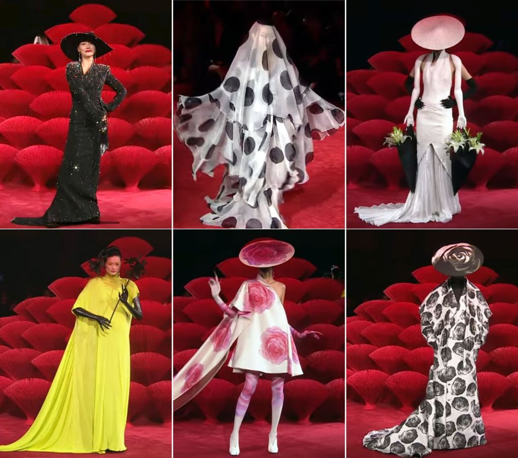 This time, another extraneous being was introduced. In look three, the model, with extra pair of arms and draped in purple, carried a child as violet as the dress. What came to mind was the Thai horror flick Nang Nak (also made into several films, with the 1999 version the most popular). Mr Wun is known to weave stories into his designs and, in Hong Kong, there was no less than half a dozen tales, all told through the admirable techniques available to him through the metiers of the couture. There was broderie trompe l’oeil that mimick blood splatter and snow adhered to outerwear. And the strict tailoring that allowed for some of the severe lines or unforgiving corsets. Many of his fans rave about his ability to play up the shapes he admires in couture and the surrealism that high fashion affords. These he does with considerable elan. Yet, some of the looks, undoubtedly dramatic and extravagant, were, to us, reminiscent of John Galliano, Thom Browne, even Richard Quinn. Robert Wun’s vivid story-telling would be better spun with his very own yarn.