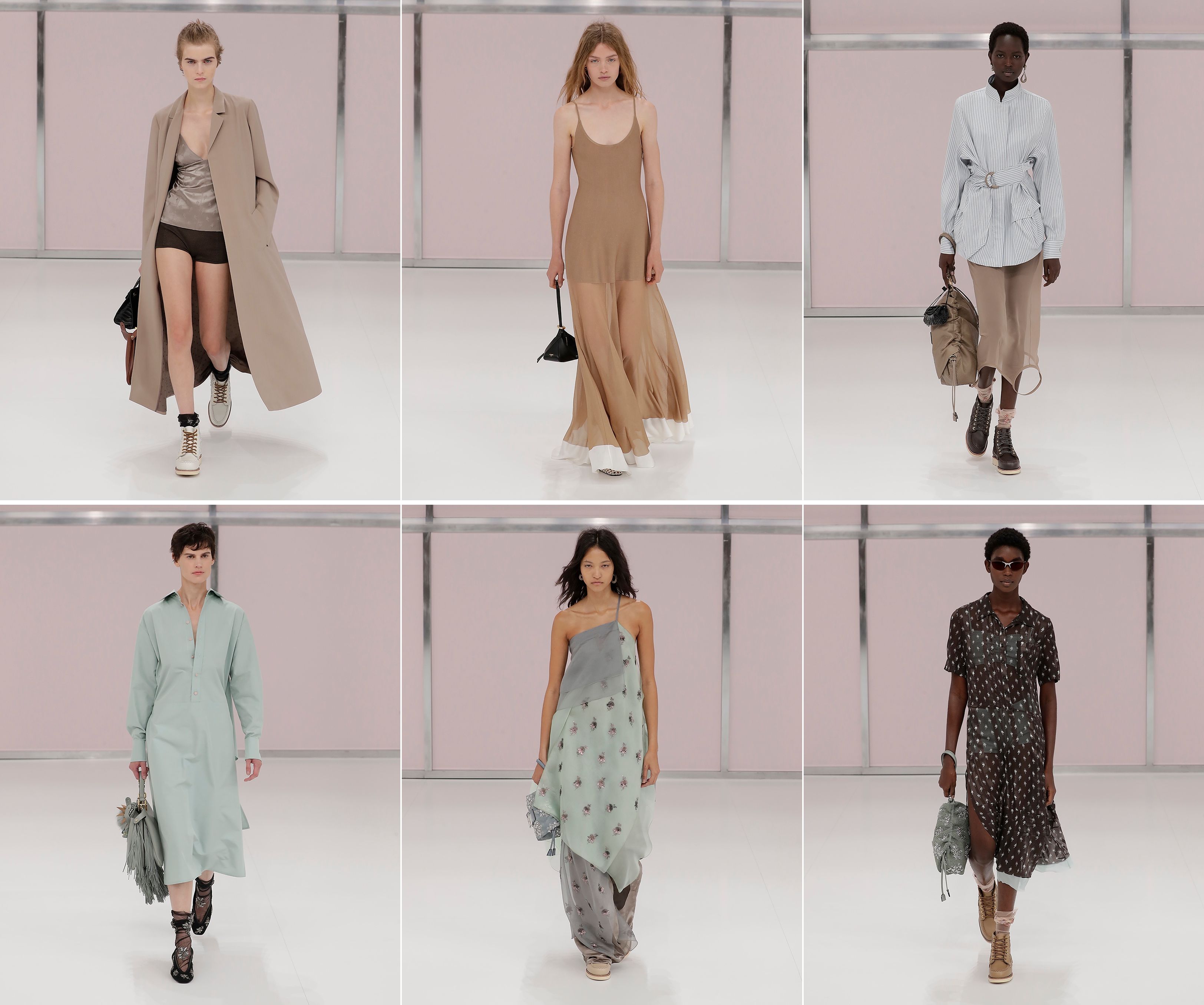 In fact, modernity—what does it even mean now?—could be the collection’s undoing. In his simplifying of things or the making of sheer this and that (a move that, no doubt, would welcome him to fellow LVMH employee Maria Grazia Chiuri’s crowded club), Mr Jones nearly achieved a reduction-to-nought. How else do we square with the singlets that SKIMS offer with far more style? Or the tab-collar shirts with patched pockets nicked from the safari jacket. Or there-is-nothing-here shirt-dresses worn for a night of Netflix binging. Or short-sleeved bathrobes that so many holiday-makers no longer wear in a hotel room, let alone on the city streets. Or the shockingly Shein styling of tank top over a shirt? Or the cardis—from knitted and long to sheer and tacky—that constituted much of the layering that was, at best, ungainly? And those Red Wing work boots! A hundred years is a long time to keep a house going. But more is needed to move it to the top. A lot more.