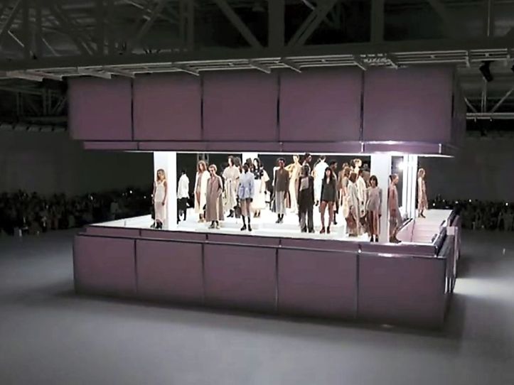 For the finale of the spring/summer 2025 show in Milan, Fendi had the models gather unexpectedly inside an oblong receptacle, erected in the middle of the hall-as-runway. At the start of the show, it was innocuous enough: it looked like a massive, yet unremarkable, set that a brand like Fendi would have the budget to put up, just for having something blockish in the middle of the space, even if it could easily pass off as some high-tech ossuary. There was something clinical about the set-up in the middle of an unadorned presentation area. It was surprising when one considered that this was Fendi’s 100-anniversary show. When the cover of the trunk was slowly and dramatically raised, and the first sliver of light emerged, it was then clear that it was a sort of central stage, on which the models covertly gathered to appear as a group, and then proceed to finish their finale walk.