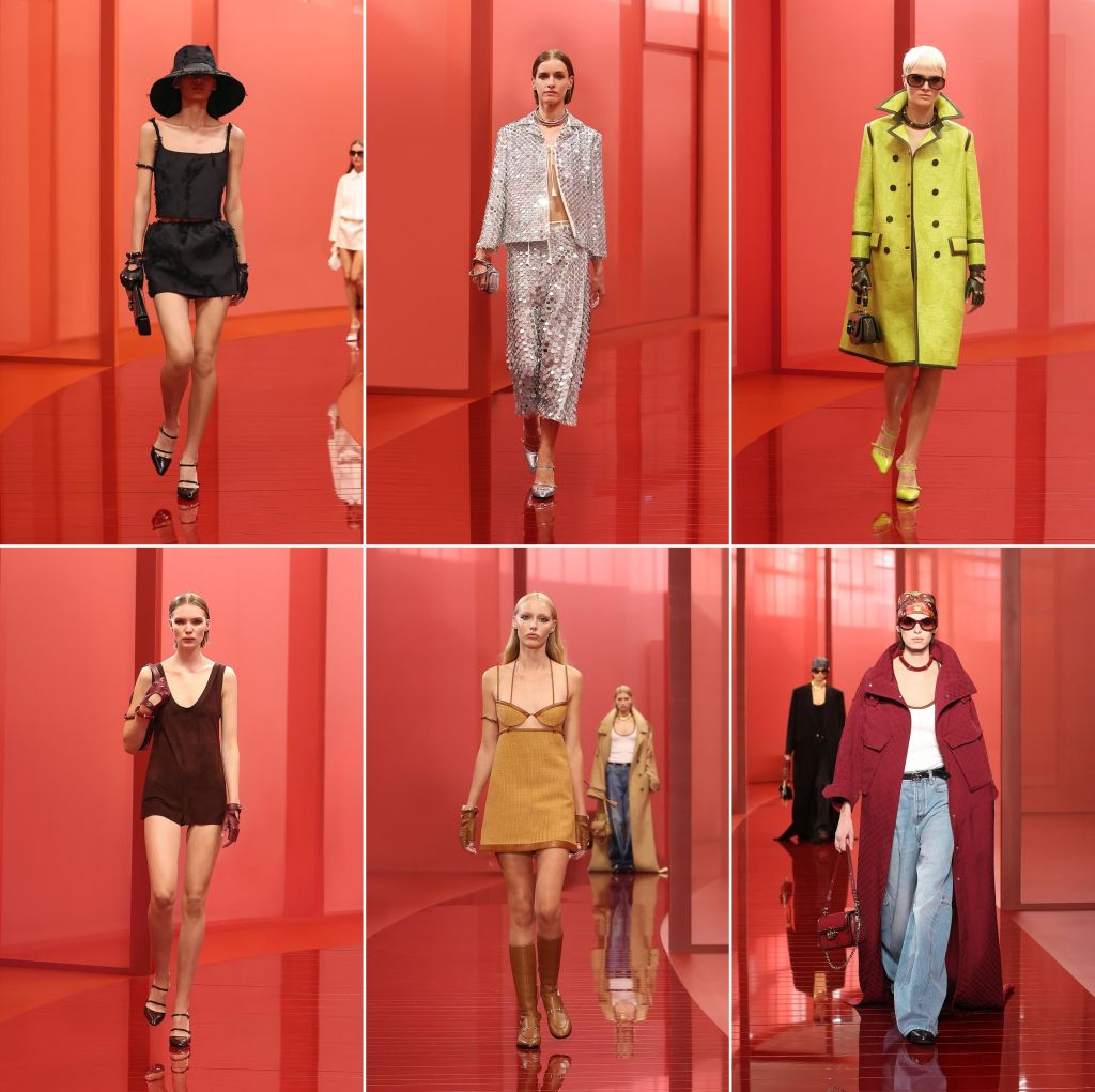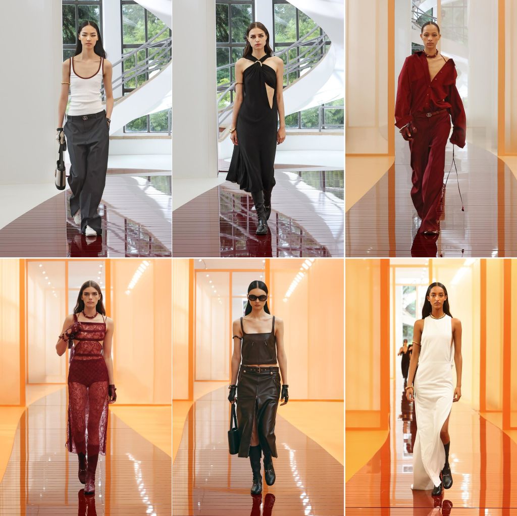 Mr de Sarno was not even aiming for interesting. He clung to what could only be described as his comfort zone, the let’s-not-break-free confines so quickly established before he could assert even a defining look. So much of the collection inevitably elicited, have we not seen that before. Take that maxi-dress—in the Ancora red (“his” Ancora red, we were reminded, and which appeared often)—with the halter neckline achieved by folding the fabric over a gold choker. Or the many sheer lingerie looks worn over granny panties that even Kim Kardashian would have found wanting. Or that sole black mini tank dress that desperately screamed out-of-place. It was not immediately clear who Mr de Sarno was targeting. The influencer crowd always in need of total looks if not free clothes? The clueless movie and pop stars attending in staggering numbers? Sadly, much of the collection were the kind of apparel that would allow Shein and Temu to produce and sell, by next week.