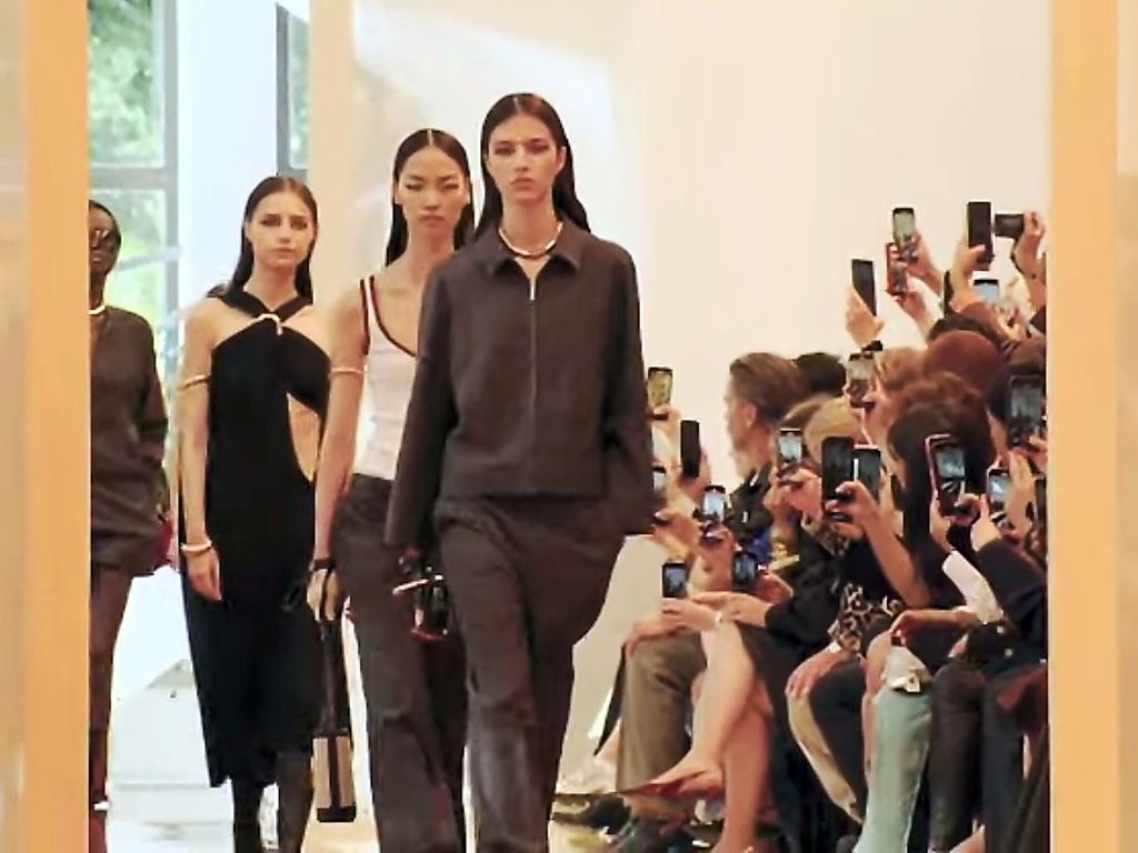 Mr de Sarno was not even aiming for interesting. He clung to what could only be described as his comfort zone, the let’s-not-break-free confines so quickly established before he could assert even a defining look. So much of the collection inevitably elicited, have we not seen that before. Take that maxi-dress—in the Ancora red (“his” Ancora red, we were reminded, and which appeared often)—with the halter neckline achieved by folding the fabric over a gold choker. Or the many sheer lingerie looks worn over granny panties that even Kim Kardashian would have found wanting. Or that sole black mini tank dress that desperately screamed out-of-place. It was not immediately clear who Mr de Sarno was targeting. The influencer crowd always in need of total looks if not free clothes? The clueless movie and pop stars attending in staggering numbers? Sadly, much of the collection were the kind of apparel that would allow Shein and Temu to produce and sell, by next week.