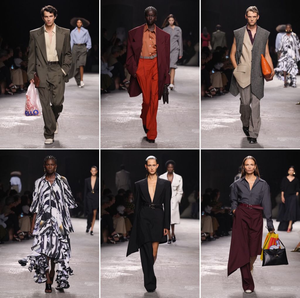 It should be said that Mr Blazy would not have been able to show this collection without Demna Gvasalia having paved the way at Balenciaga earlier. Those pronounced shoulders of the jackets, for the menswear especially, or the oversized blouson had benefitted from the assimilation of the exaggerated silhouette into fashion across the price spectrum. Even the women’s too-large, waisted shirt-jacket was not an anomaly because workwear is now so much a part of streetwear infiltrating luxury fashion. The magnified was applied to the details too, such as the tassels on each corner of the slit skirt, front and back—charms for hems. Or, the peplums formed by distended cartridge pleats of those beautifully printed dresses. On that note, Mr Blazy did not shy away from the romantically feminine. His flamenco skirts, for example, with their generous ruffles had adequate flow and flare to be traditional, but also with the assymetry to prevent them from dancing into costume territory.