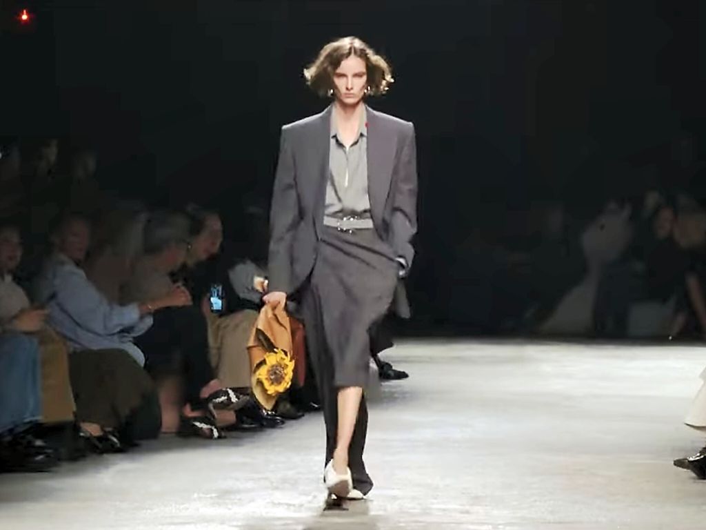 From the the first look, it was clear Matthieu Blazy was onto something. For any other show, the oversized blazer and the shirt underneath would not have moved mountains. Nor did Bottega Veneta’s, to be honest. But the new half-skirt, half-pants did transmute the ensembles into something more formidable. As an idea it could be gimmicky, but in execution, the bottom was an astute coupling of tailoring styles. Where the did pants begin or the skirt end? And Mr Blazy did not stop at just one silhouette. The half-halves came in more relaxed shapes, including one that was rather fluid, less tailored, flowy even. Seeming disparities set up to form perfectly synergistic wholes were truly the spirit of the collection.
