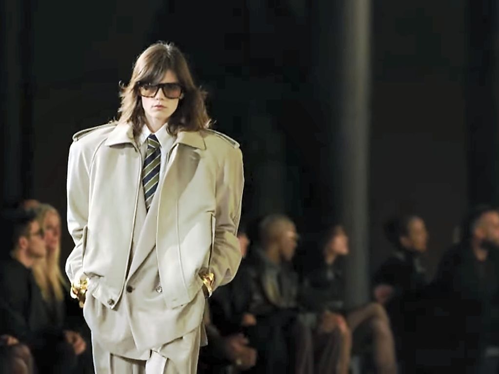 It was not the first time that it rained during Anthony Vaccarello’s Saint Laurent presentation. His second collection for the maison in 2017, for example, was met with a downpour. But the inclement weather this time bode well for him even if it caused the show to start late. Mr Vaccarello is probably the only designer working for a house not his, who has no qualms in bringing back the past again and again, and respecting the sometimes rather dreaded house codes. This time, he went to the man himself, or how Mr Saint Laurent used to appear in public during the years he did still go out, to nightclubs, such as Le Sept and, later, Le Palace. More than half of the looks captured YSL menswear of ’80s. This could have been a men’s show sans male models. And to capture the evocative mood, some of the women’s hair were style in the manner Mr Saint Laurent used to wear his. And those glasses!