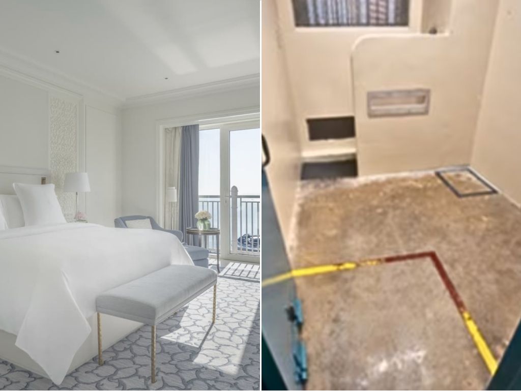 One-bedroom suite at the Four Seasons, Doha and the one-man cell in Changi prison. Photos: Four Seasons and Ministry of Home Affairs respectively
