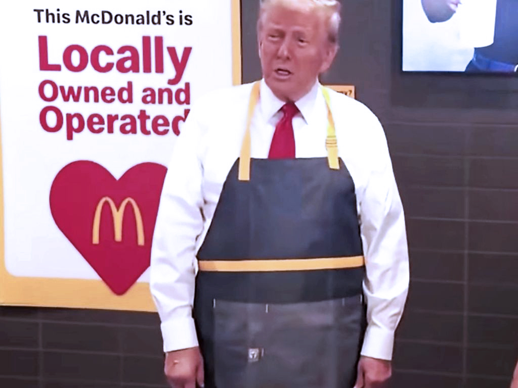 Donald Trump with an apron over his white shirt and the foolish tie is more fetching than him in his often lumpy suit jacket (especially at the shoulders). He looked like Colonel Sanders. Okay, a MAGA-siding restaurant supervisor, which might be the image that is more relatable among his base than that of an angry, vile politician or a convicted felon. The apron, even without the neck strap sitting properly (no stylist was present nor a surrogate, such as Laura Loomer), was just the thing to show how working class he could be, although we know that it was a lie. Mr Trump has never worked a day in McDonald’s, as he admitted, and he still had not. There was his physical presence at the store, but that did not amount to employment. That made it another one of the fabulist’s countless, blatant untruths. It was also likely Mr Trump’s first time wearing an apron, but that did not mean he was tied to anyone’s apron strings or that he would be, not even his wife’s. And definitely not a porn star’s.