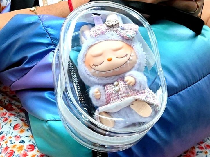And that is not considering the countless accessories you could buy to customise your Labubu. As the keyring-plushies are expensive and are meant to be hung on bags and, more importantly, seen, many owners want to protect them. So the first item to buy is a case. These can be hard or soft, and are always clear. And they can, I was shocked to discover, cost as much as the doll itself. And as many owners want their Labubus to have a wardrobe of fashionable threads, clothes for the elves are available too. A few days ago, I came face to face with a Labubu togged head-to-toe in Chanel, including the signature quilted bag! She can be as well dressed as Barbie. And clothing isn’t all there is to prettify your Labubu. There are even coloured braces for the teeth-baring Labubu. Why the perfectly flat and permanently exposed pearlies need braces is quite beyond me, but, for those who desire their elves to have dental decorations, they are covered.