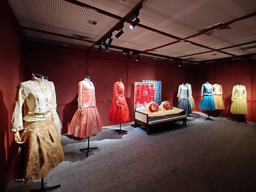 The exhibition comprises of four “Chapters”, each intended to represent the splendours of the palace grounds, but only vaguely. Although there are bilingual descriptions accompanying each of the zones, they barely furnish the viewer with the cues that would enhance the visualisation of the “architectural grandeur” of the residential complex. The opening chapter is about the Prince’s famed garden theatre, but no such spatial breadth or glory is captured. Instead, a narrow passageway with five exhibits to the left draws the visitor to the other chapters. The clothes on display are not directly associated with the mansion. They are probably not ever worn there, during, say, a party or for state affairs. Connecting the dots between garment and architectural majesty is not for those who do not draw from their imagination.