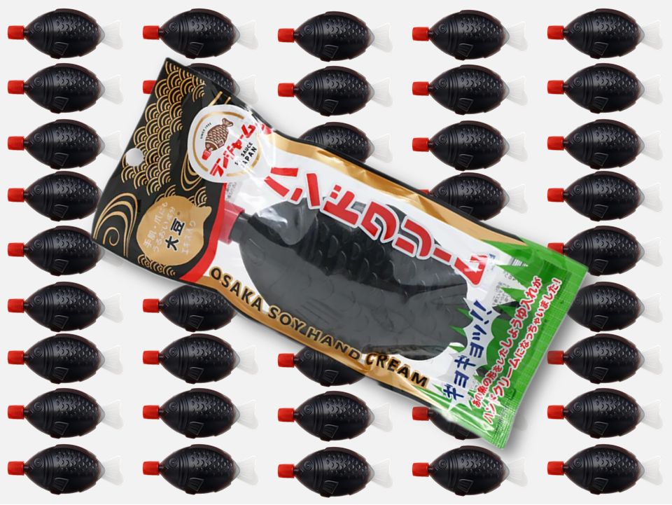 Hand cream from a soy snapper? Only in Japan! As much as the Japanese are known for their serious tech, they can come up with some whacky stuff too. The original soy snapper (or shoyu tai 醤油鯛—yhose insistent on accuracy will point out that the shape is based on the sea bream)) is a cleaver idea even when it was quite off-beat, but now the same form is available in a much larger size and is filled with hand cream. Thankfully, the Osaka Soy Hand Cream does not smell like soy sauce or even fish. But staying with the food theme, the maker of the hand cream, Heso Production, has incorporated soy-derived actives in what the company called “luxurious blend of moisturising ingredients”.