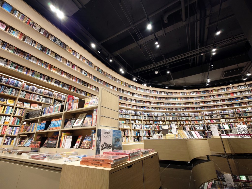 Here, the oldest bookstore (not shop or the barely qualifiable Popular) still standing is Kinokuniya, also from Japan. While Kinokuniya at Takashimaya Shopping Centre is, at 35,303 square feet, big, Tsutaya’s JB store is no slouch, even at merely 2,500 square meters. And Tsutaya looks far larger and more impressive because of the high ceiling and that massive, curved wall shelf of books that Instagrammers cannot resist. Given its scale, this is designed to awe-inspire and to affirm the belief that books in huge numbers can be an element of interior design. For certain, no one will climb to the upper reaches (although, we think the staffers will oblige if you spotted something you desire, even if it is hard to read the titles from so far away), but the sight of those books looming above is comforting, even assuring, as if in a cathedral with the cherubim watching over you.