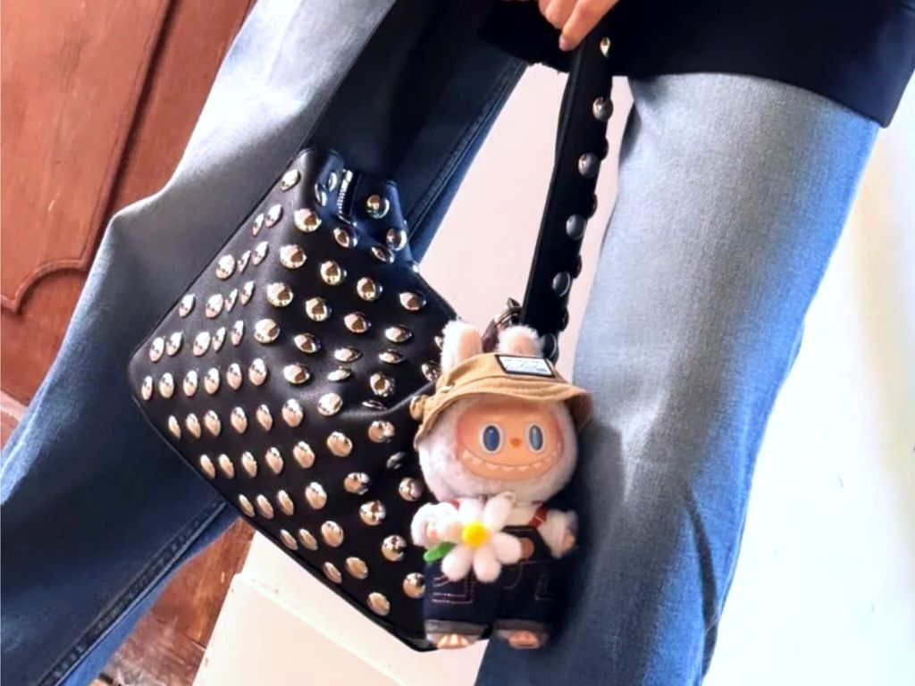Besides, no one is ever seen playing with it or even treating it like a toy. They hang like unnoticed Christmas ornaments. Where is the fun? We were told that the enjoyment is in treating Labubu like you would a child. You can, as it turns out, take your adoptee to have a ‘spa’ (read: a session at a cleaning service), for a make-up session (there are those for eyes or the entire face), to have her fur re-painted (you can choose more than one colour), and even have her saw ‘teeth’ fixed with braces (seriously)! Labubu’s high-fashion association (attributable to Lisa who has, so far, attached hers to a studded Khaite ‘Elena’ bag, an Hermès ‘Constance’ and a Louis Vuitton ‘Speedy 25 Bandoulière Damier’) means that the creature needs a fashionable wardrobe to impress. And there are countless online boutiques and sellers to indulge her—or your—every whim.
