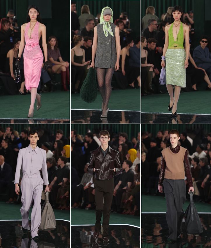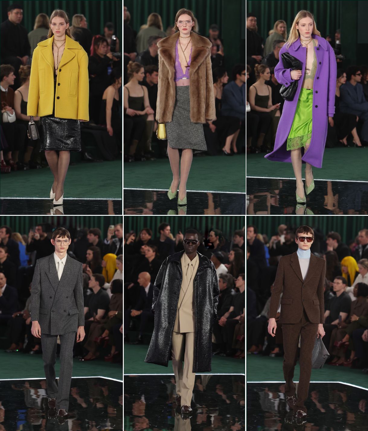 There was green everywhere, at least on and around the runway, which made us wonder if the production designer of The Matrix was responsible for the admittedly eye-catching construction. Whatever happened to Mr de Sarno’s much-touted ‘Ancora’ red? Ditched? Dumped? Disliked? Was it a deliberate attempt at wiping out any trace—even if merely chromatic—that could be linked to the former creative director, once staunchly believed by the higher-ups to be Gucci’s desperately-needed saviour? Within the new, start-afresh greenery, the collection was a throwback to the halcyon days of Gucci. If this pretty preserve—tinged with palpably unsound taste (how to explain those leggings with glittery monogram?)—was what the brand truly desired, it is hard to think that Mr de Sarno could not deliver.